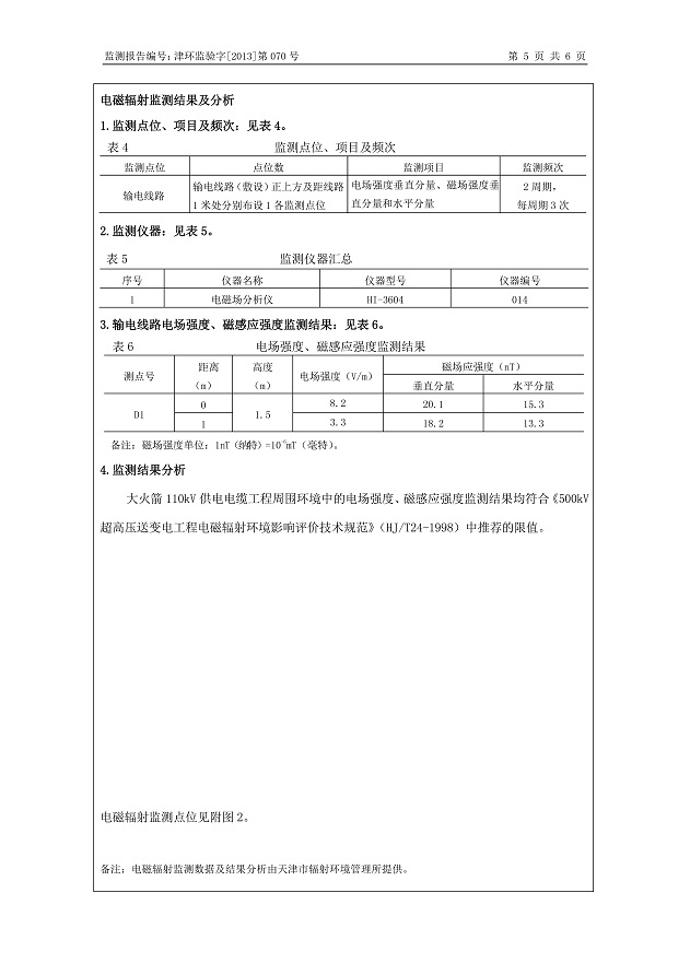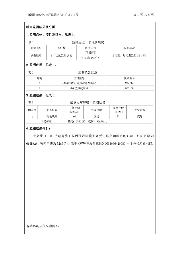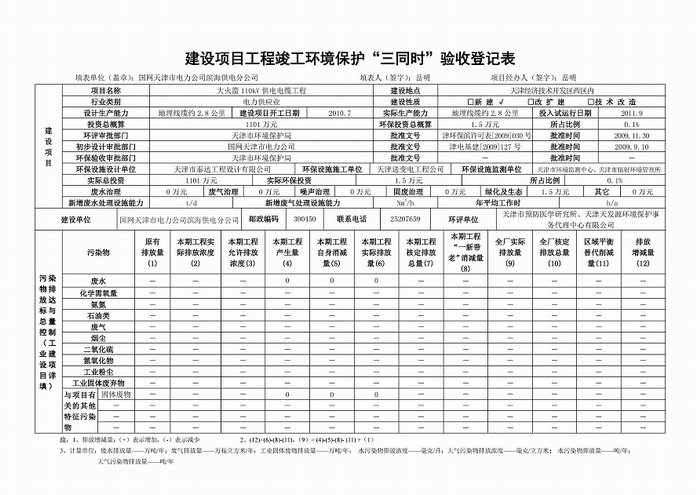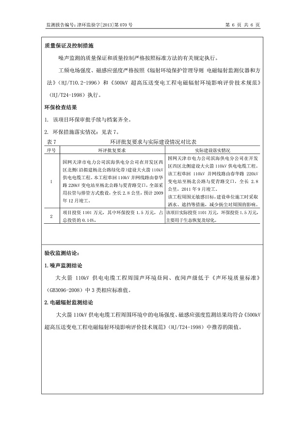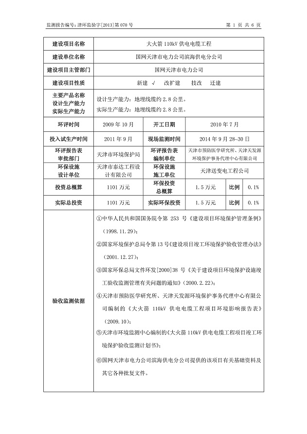大火箭110kV供電電纜工程環保驗收監測報告表公示